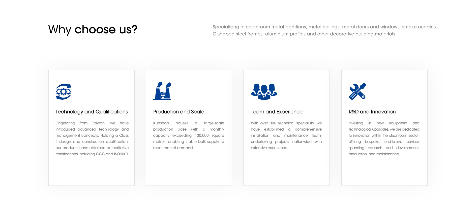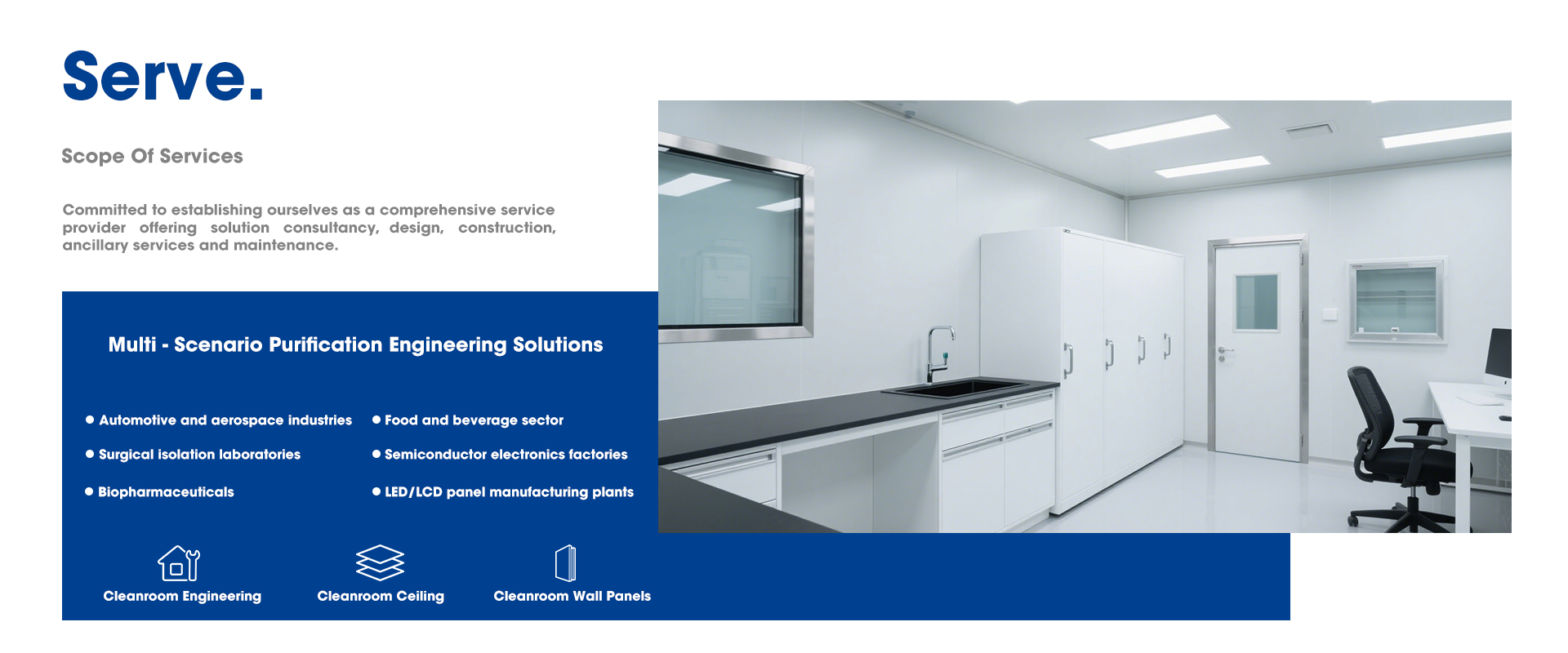Specialising in cleanroom metal partitions, metal ceilings, metal doors and windows, smoke curtains, C-shaped steel frames, aluminium profiles and other decorative building materials.